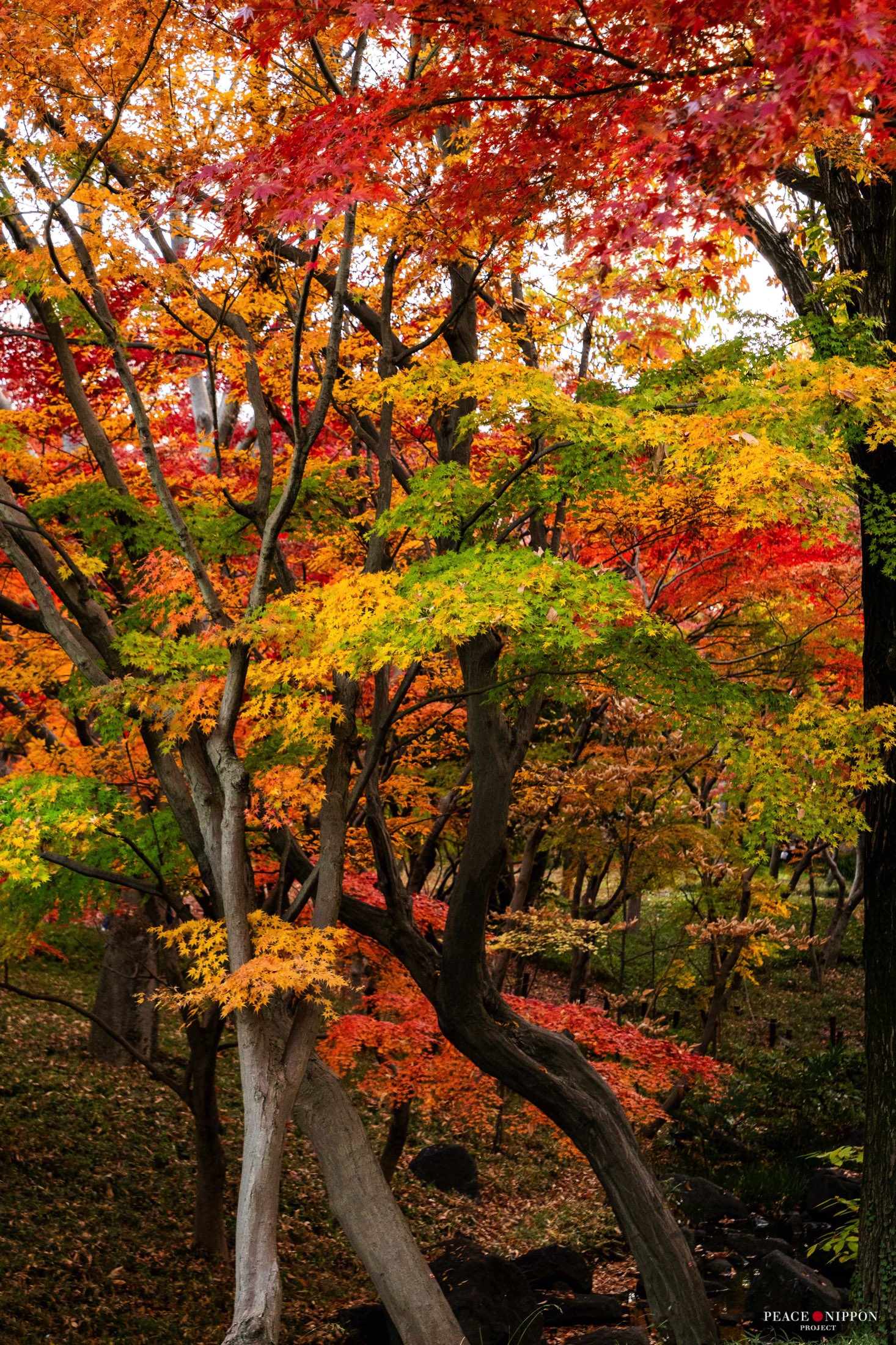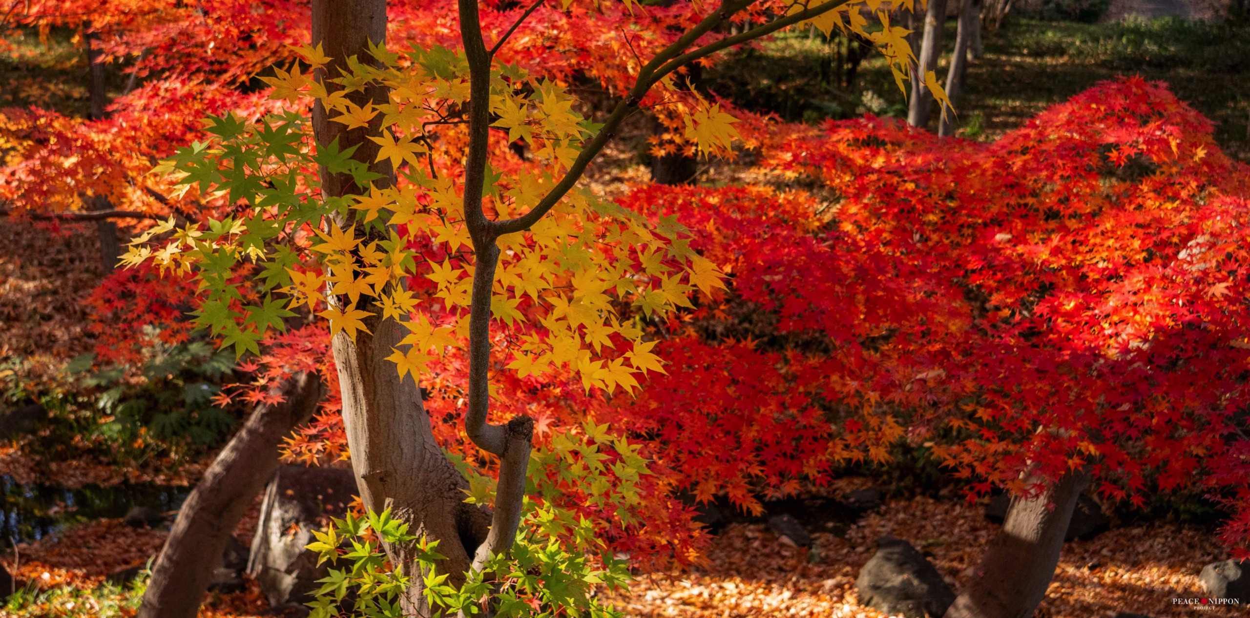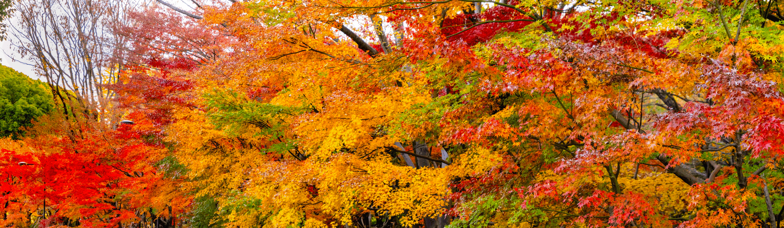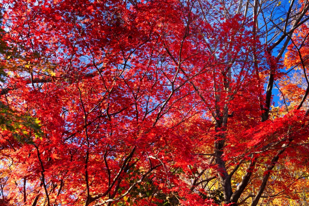 西側に紅葉が多くある場所があります。色とりどりで美しいです。