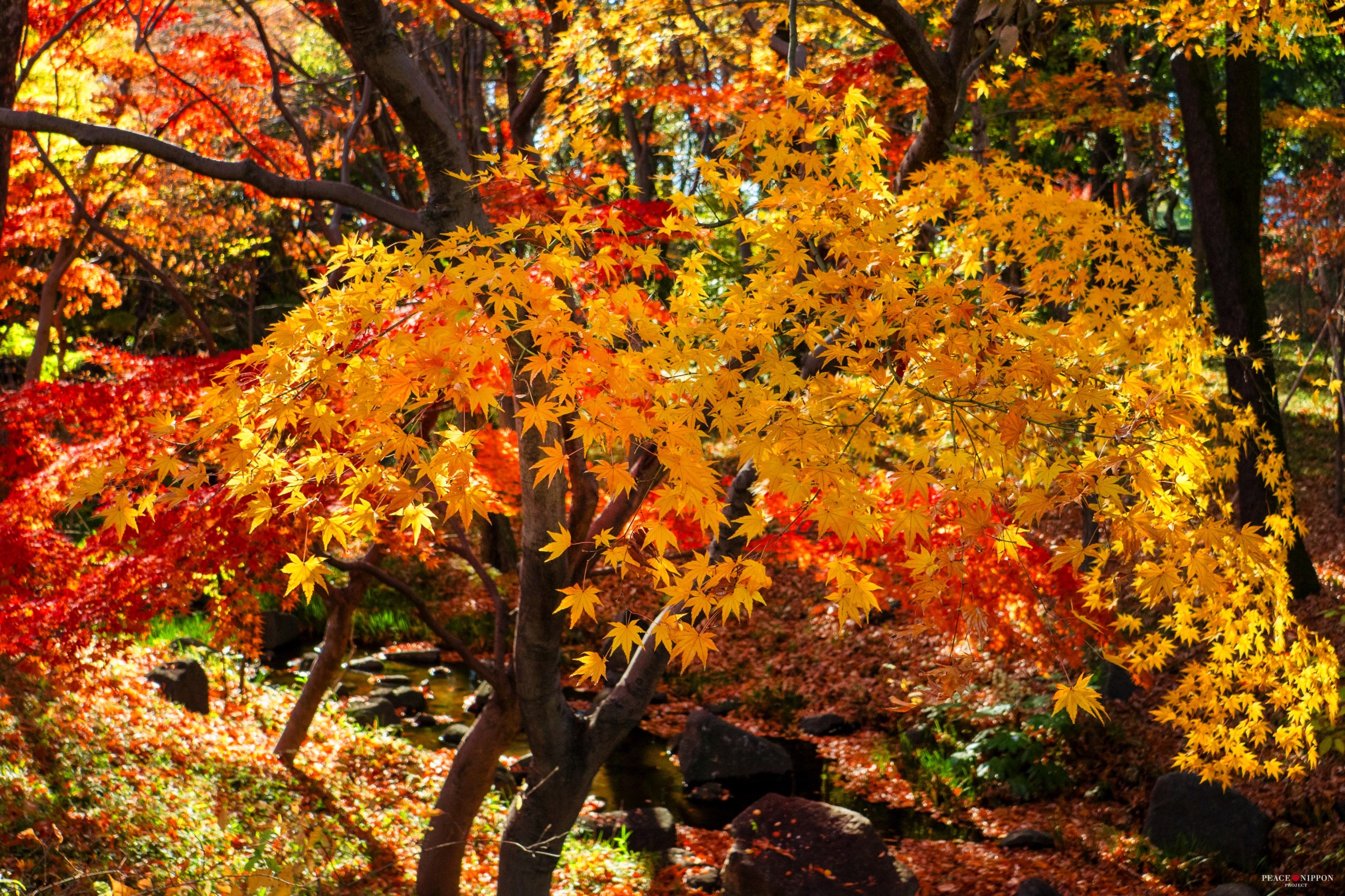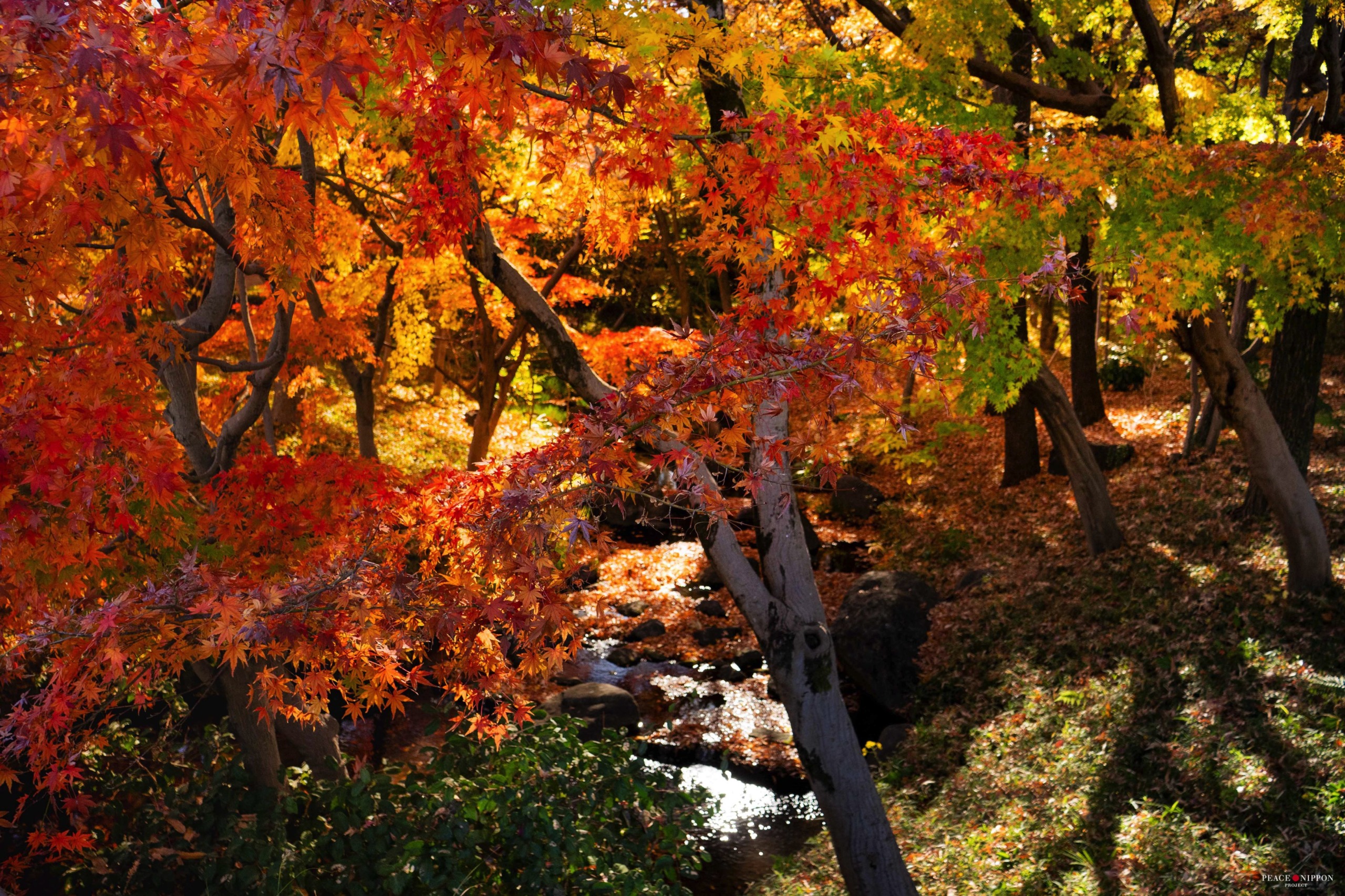 所々に小川があったり小滝が配されています。キラキラして美しいです。