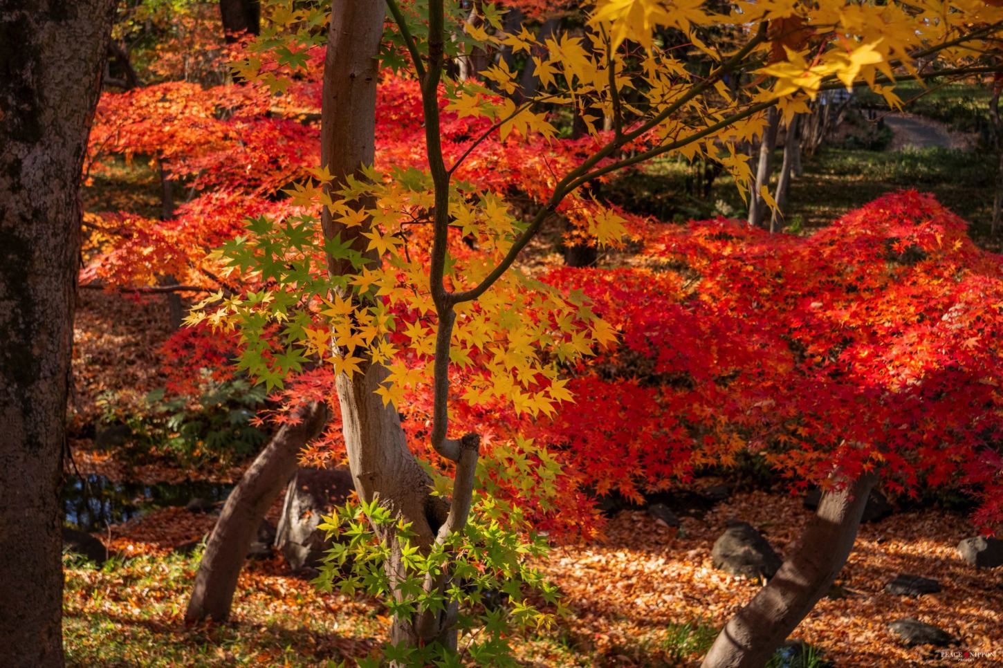 西側に紅葉が多くある場所があります。色とりどりで美しいです。