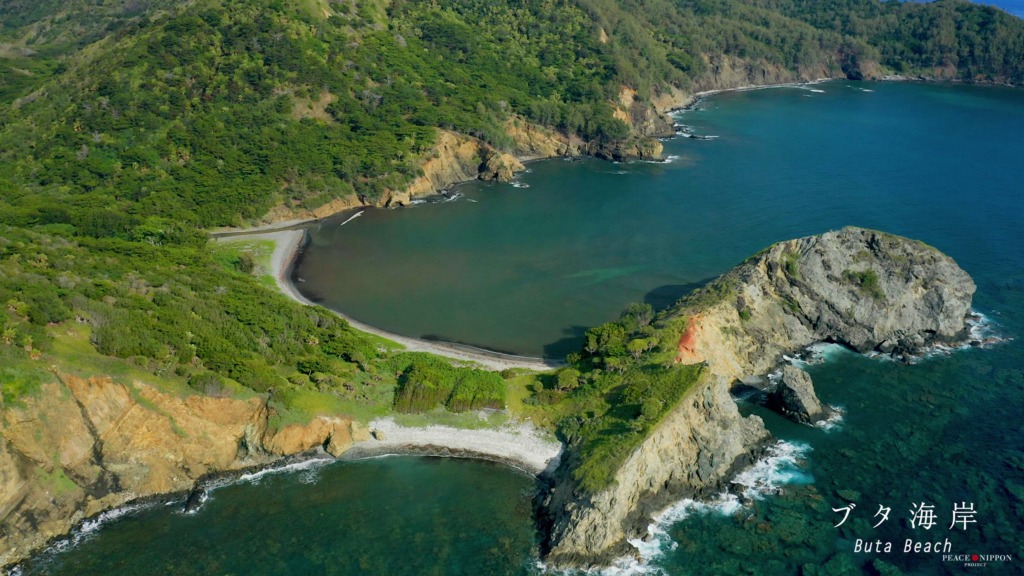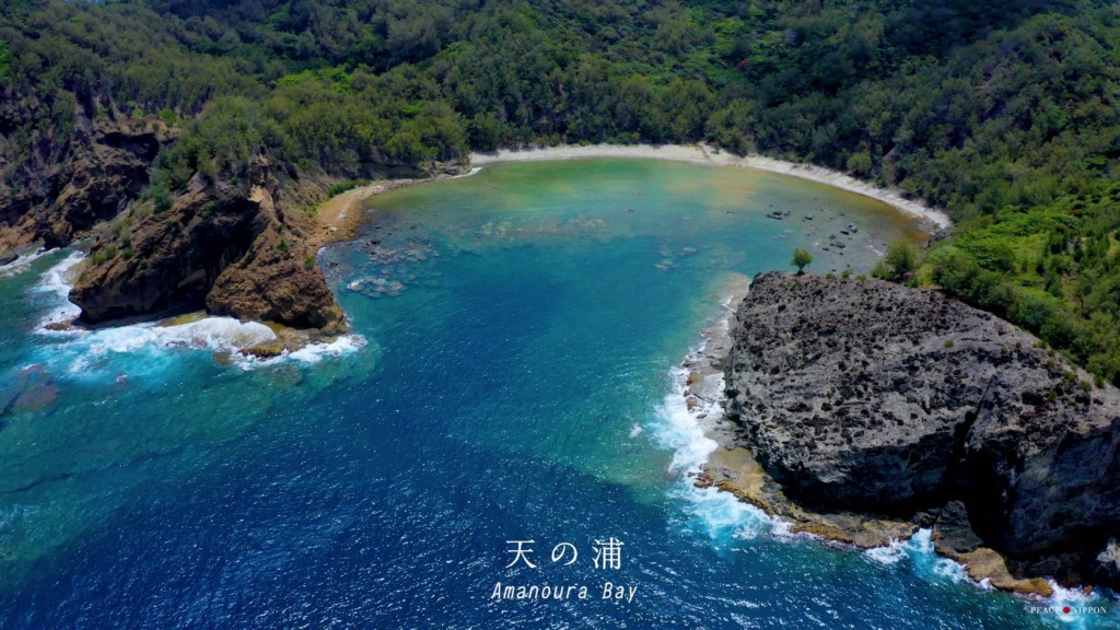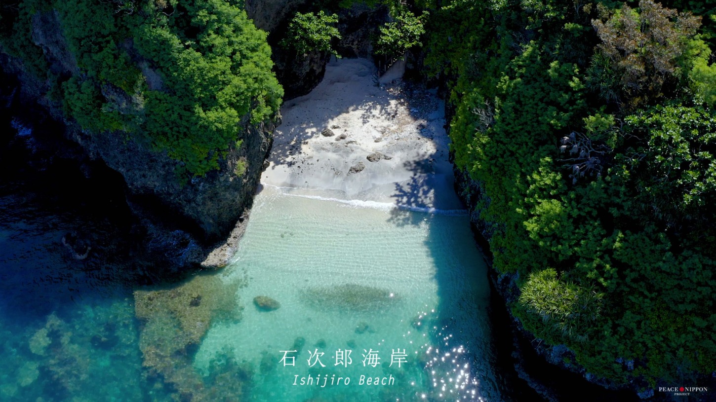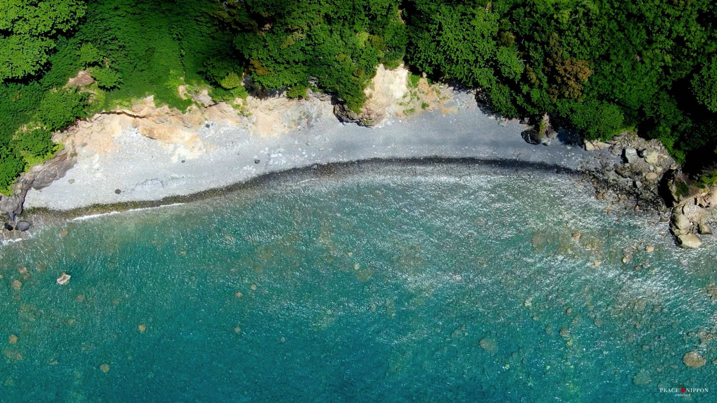 港の右側、船のデッキから見えて、港から歩いて6分くらいでいける小さくて美しい石次郎海岸。