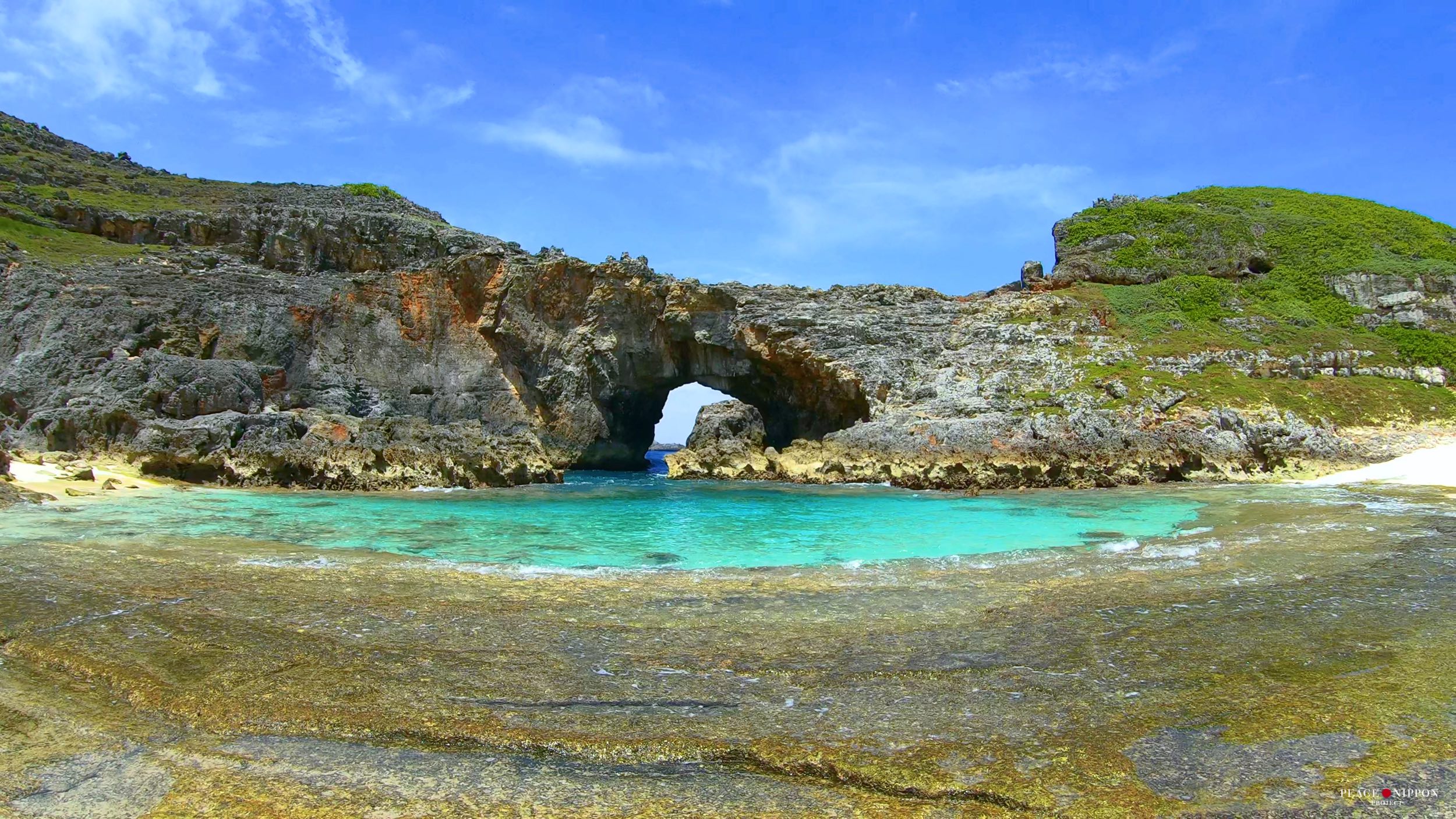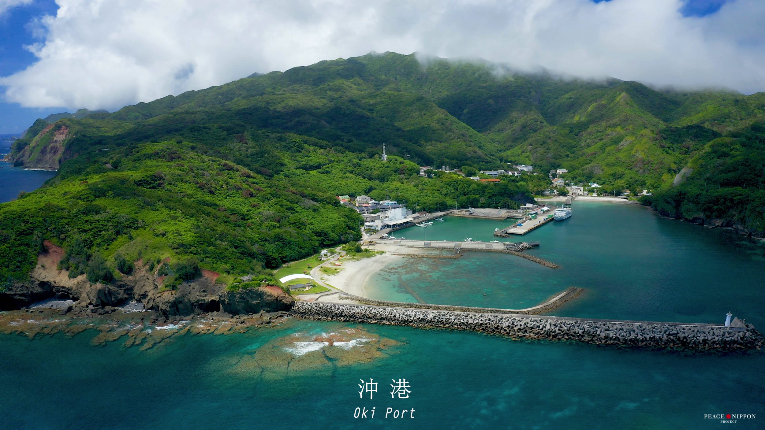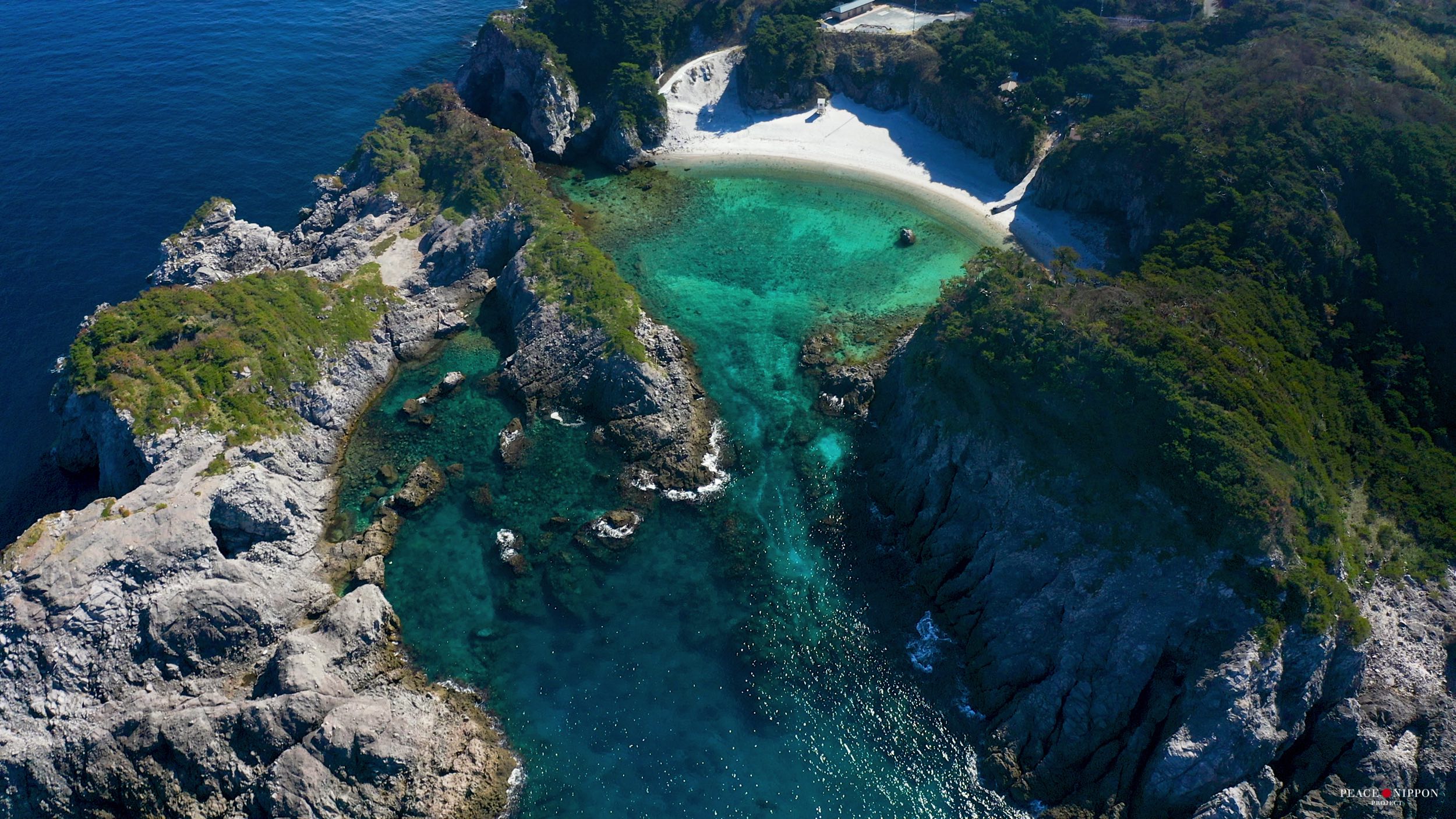 港の右側、船のデッキから見えて、港から歩いて6分くらいでいける小さくて美しい石次郎海岸。