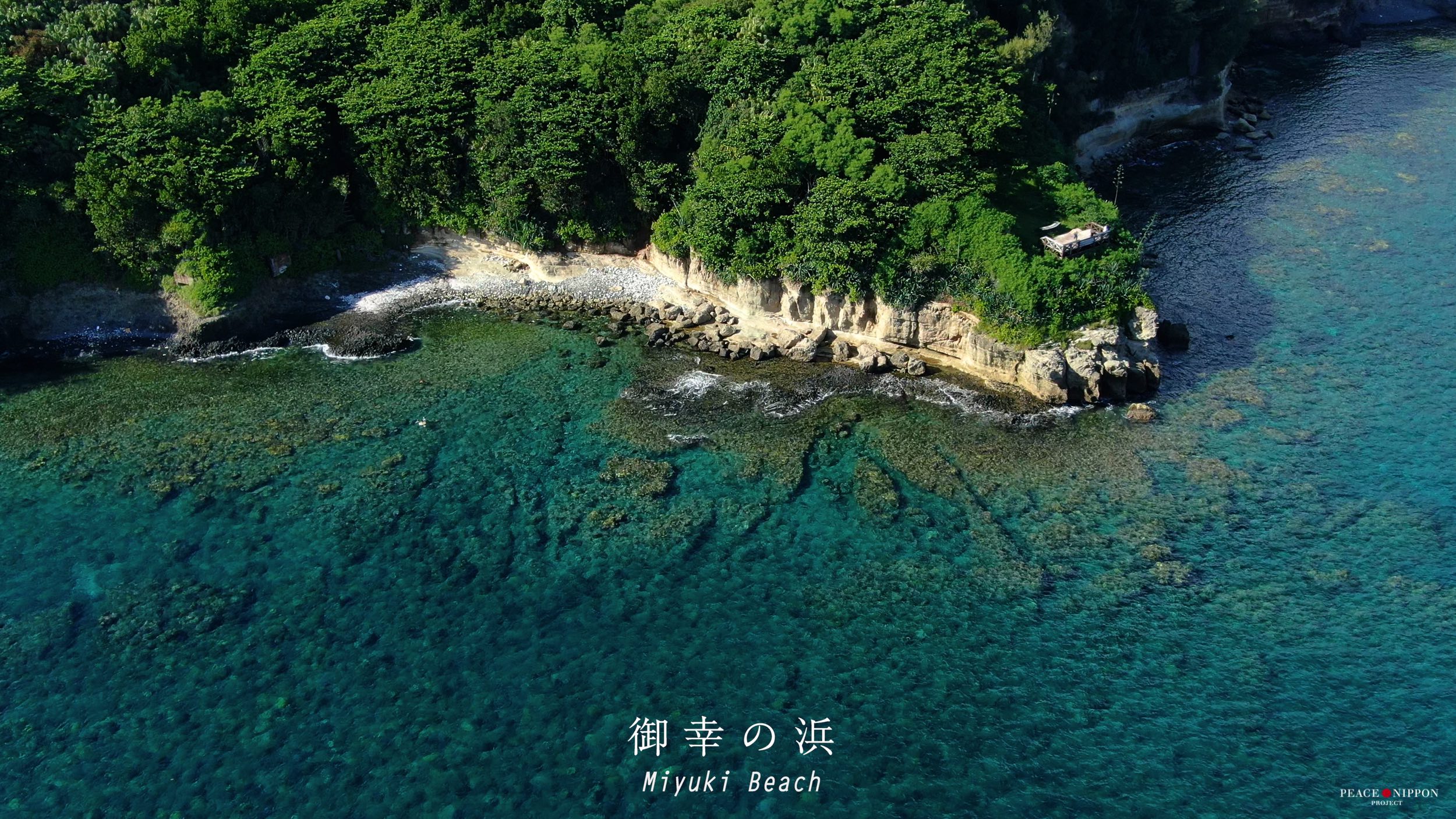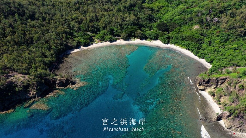 ↑宮ノ浜海岸は、集落から歩いて行けるので、おすすめです。音が良くて何時間でもゆっくりできます。水中眼鏡さえあれば、シュノーケリングできますし、波もほとんど立たないくらい静かな湾です。